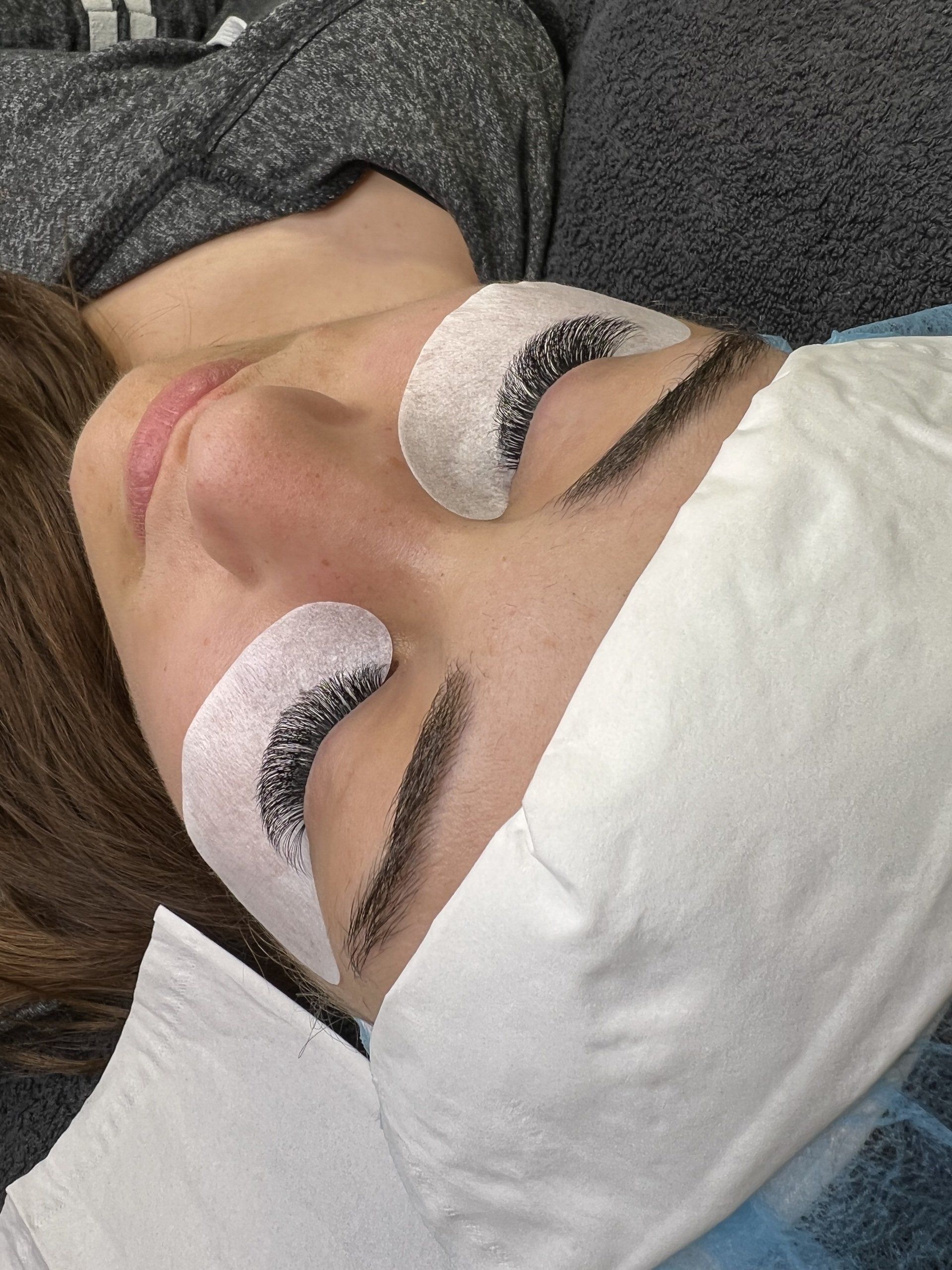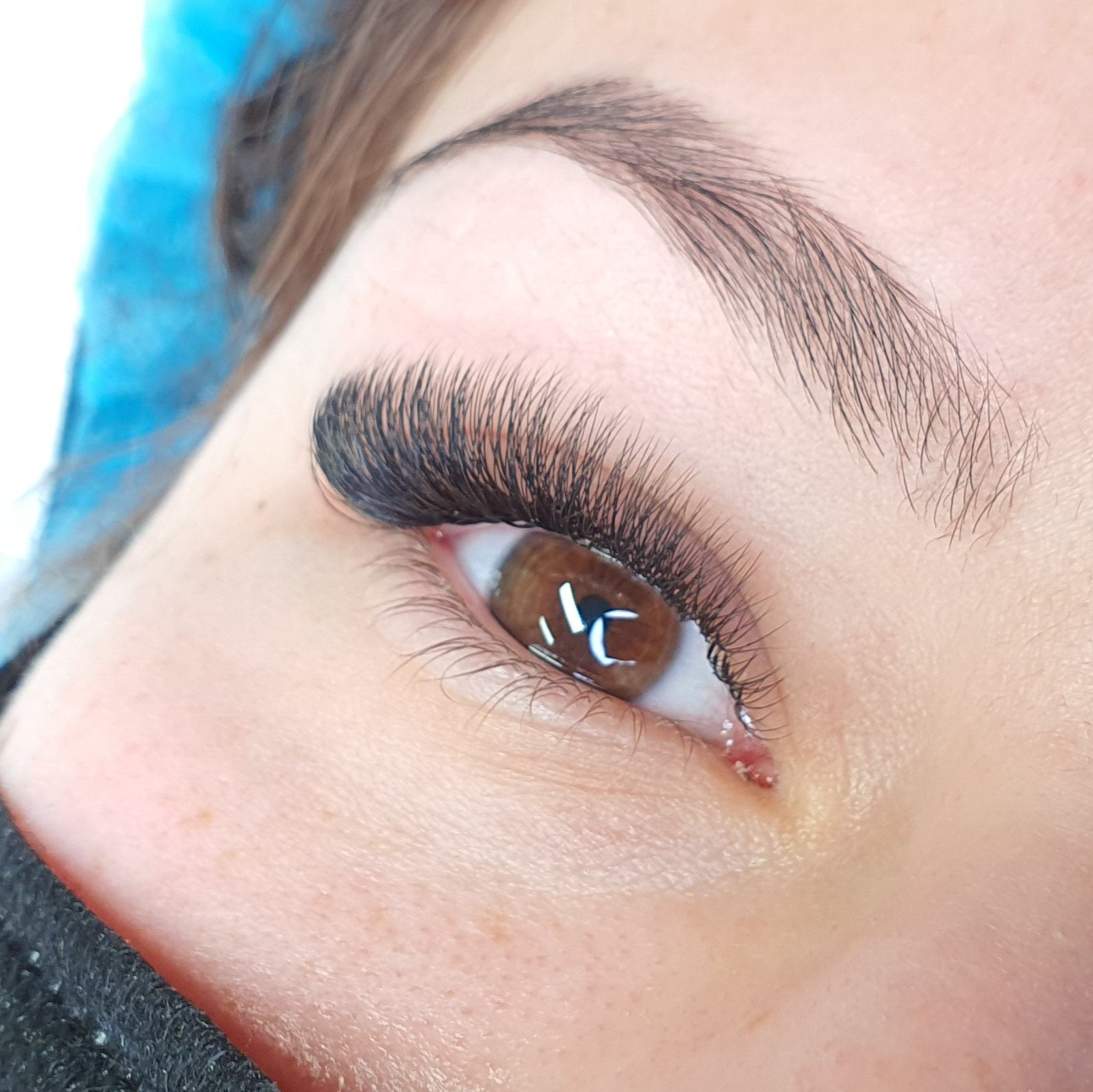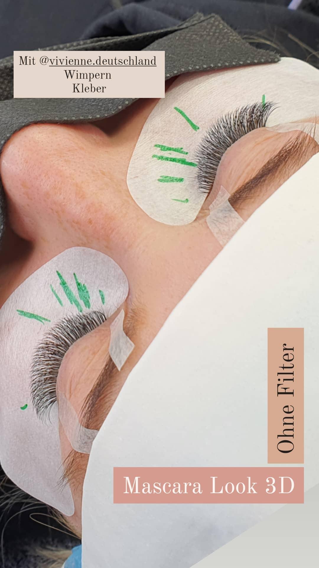 Es werden ca. 70 Volumenwimpern der Stärke 0,07 pro Auge auf die Naturwimpern appliziert. Behandlungsdauer ca. 1,5 Stunde.